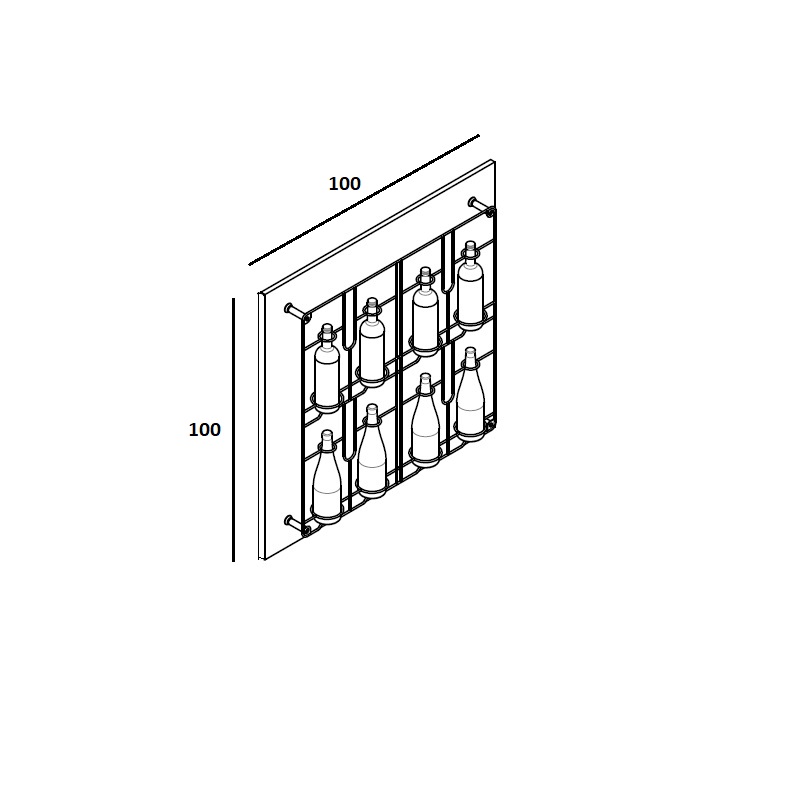 Panneau mural avec présentoir en métal pour 8 bouteilles de vins, finitions au choix.